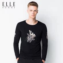 ELLE HOMME男装长袖T恤男 修身圆领时尚豹子印花t恤衫春秋新款潮