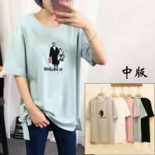 棉刺绣中长款韩版宽松短袖T恤春夏女装打底衫bf风原宿学生上衣潮