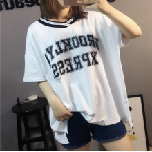 【天天特价】纯棉v领大码宽松夏季潮上衣中长款韩范t恤女学生胖mm