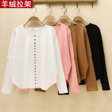 秋冬季加肥加大加绒加厚打底衫女短款 珊瑚绒纯棉上衣绒衫内搭T恤