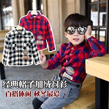 2016冬季儿童加绒格子衬衫男童加厚多贴标百搭衬衣中大童韩版长袖