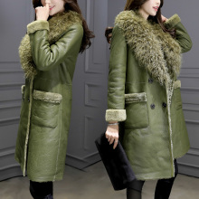 2016冬装女装新款韩版羊羔毛棉衣外套军绿中长款皮毛一体棉袄大衣