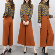2017新款女装春装两件套裤欧美雪纺长袖长裤阔腿裤休闲时尚套装女