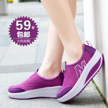 摇摇鞋女网面透气韩版坡跟单鞋学生一脚蹬懒人厚底松糕鞋春夏新款