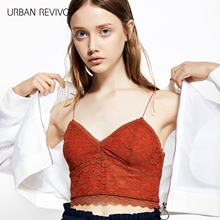 UR2017春夏新款青春女装蕾丝吊带露肩透视T恤YB10B4BN2000