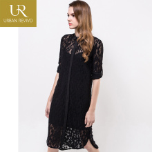 UR2016夏季新款女装宽松勾花翻领衬衫式H型连衣裙WG19R7BN2001