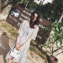 KMZY夏季新款韩版气质V领雪纺连衣裙女收腰显瘦露背不规则中长裙