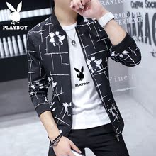 花花公子男士薄款外套春夏新款青年夹克衫休闲春秋潮流运动上衣潮