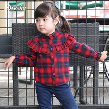 笛莎童装宝宝长袖衬衫秋2017新款小童/1-8岁格纹上衣儿童纯棉衬衣