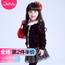★笛莎童装2017春秋季女童舒适百搭儿童毛衣开衫针织衫纯棉毛衣