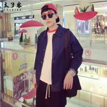 太子客牛仔风衣男长袖牛仔外套春季青年翻领纯色宽松中长款外套潮