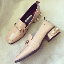 春季单鞋女2017新款春天韩版英伦风粗跟漆皮珍珠鞋低跟百搭乐福鞋