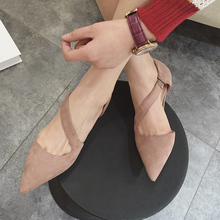凉鞋女夏2016新款低跟韩版女鞋绒面尖头浅口舒适性感方跟单鞋女