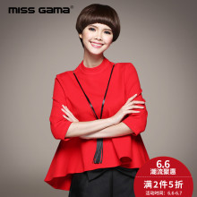 2017春装新款大码女装纯色宽松时尚七分袖T恤春短款红色上衣女潮
