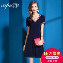 爱朴欧美大码女装夏装2017新款潮时尚V领胖mm连衣裙短袖宽松200斤