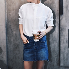 新美仓 三色慵懒风丝绵廓型衬衫 夏季新款2017