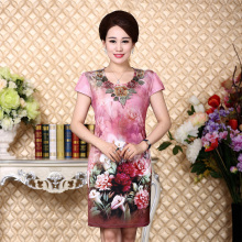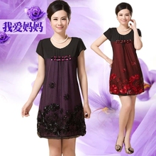2016夏装中老年女装印花妈妈装连衣裙中年妇女40-50大码显瘦裙子