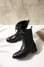 女士英伦风马丁靴女粗跟复古靴子女中筒靴冬季欧美系带中跟女靴潮