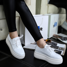 松糕鞋2016春款平底单鞋厚底深口女鞋学院休闲小白鞋女系带板鞋女