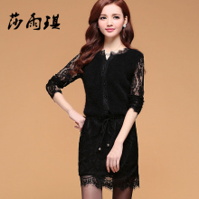 加厚款蕾丝连衣裙女2016秋冬新款修身宽松腰中长款打底衫皮草内搭