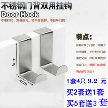 4只不锈钢门背式衣帽挂钩无痕双用挂钩整理挂钩