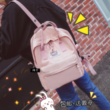 日系新款森系纯色百搭帆布双肩包学院风少女粉嫩中学生书包小背包