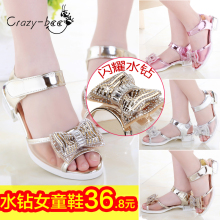 女童凉鞋2017夏季新款儿童韩版蝴蝶结女童凉鞋水钻中大童公主凉鞋