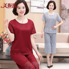 中老年女装夏装中袖薄款套装中年妈妈装40-50岁上衣+九分裤两件套