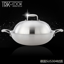 德国TRK不锈钢炒锅无涂层无油烟不粘锅34cm双耳炒菜锅电磁炉通用