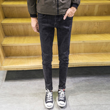 春夏新品潮流修身韩版小脚牛仔裤男 青少年九分灰色休闲牛仔裤