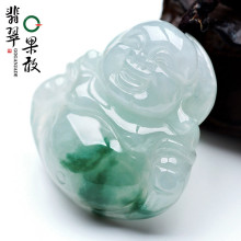 多款可选C015R果敢翡翠 缅甸A货翡翠飘花玉佛笑佛吊坠女款佛公