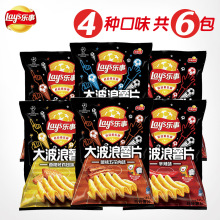 乐事大波浪薯片145g*6包 办公室休闲好吃的零食整箱批发膨化食品
