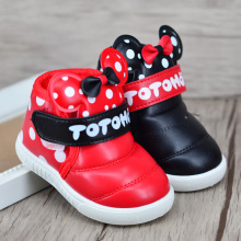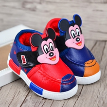包邮冬款加绒宝宝棉鞋卡通米奇头婴儿雪地靴男女童学步软底小皮鞋