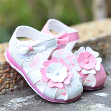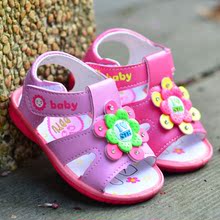 包邮夏季公主鞋 女 宝宝凉鞋 包头 花朵小皮鞋 嬰儿学步鞋 闪灯鞋
