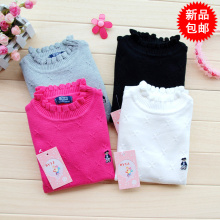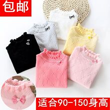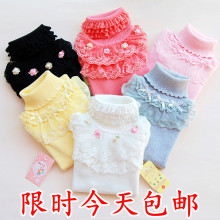 童装秋装 2017新款女童毛衣高领蕾丝打底衫 全棉儿童针织打底毛衣