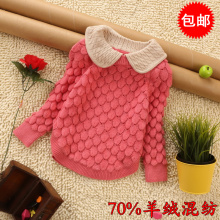 儿童毛衣2017秋装韩版女童娃娃领针织衫宝宝翻领毛衣羊绒混纺毛衣