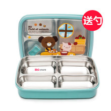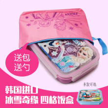 韩国进口宝宝餐盘不锈钢儿童饭盒密封隔热防烫带盖分格学生饭盒包