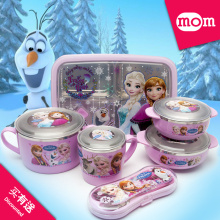 韩国进口迪士尼冰雪奇缘女孩儿童餐具304不锈钢防烫双耳饭碗水杯