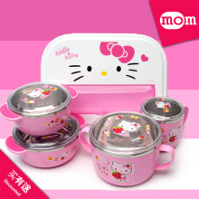 韩国原装进口HelloKitty儿童不锈钢餐具勺叉筷子碗水杯304不锈钢