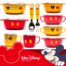 迪斯尼米奇儿童米老鼠防滑双把碗汤碗勺叉304不锈钢餐具韩国进口