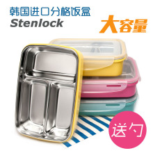 学生饭盒韩国进口stenlock分三四格大容量304不锈钢便当密封白领
