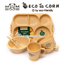 进口宝宝餐盘水杯宝宝饭碗韩国小熊eco玉米淀粉材质勺双耳碗汤碗