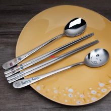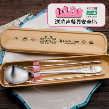 韩国进口304不锈钢拌饭汤勺实心扁筷子便携环保女士外出旅行餐具