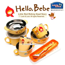 韩国进口小红帽HELLO贝贝儿童宝宝双耳碗汤碗勺筷叉水杯304不锈钢