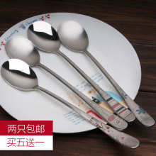 韩国进口韩式304不锈钢长柄勺子调羹花纹勺餐具石锅拌饭勺西瓜勺