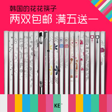韩国进口304不锈钢扁筷子实心花纹扁筷子可高温消毒餐馆家用餐具