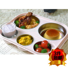 韩国五格儿童不锈钢密封餐盘/餐具/餐盒套装(带盖+防水包)现货