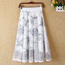 2017夏新款田园小清新印花网纱高腰显瘦修身半身裙中长裙女裙子