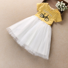 童装2017夏季新款短袖 连衣裙中大童女孩网纱拼接裙儿童蓬蓬裙子