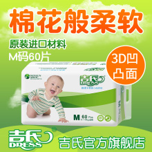 吉氏棉柔干爽纸尿裤M60婴儿柔润金棉尿裤尿不湿中号新生儿纸尿布M